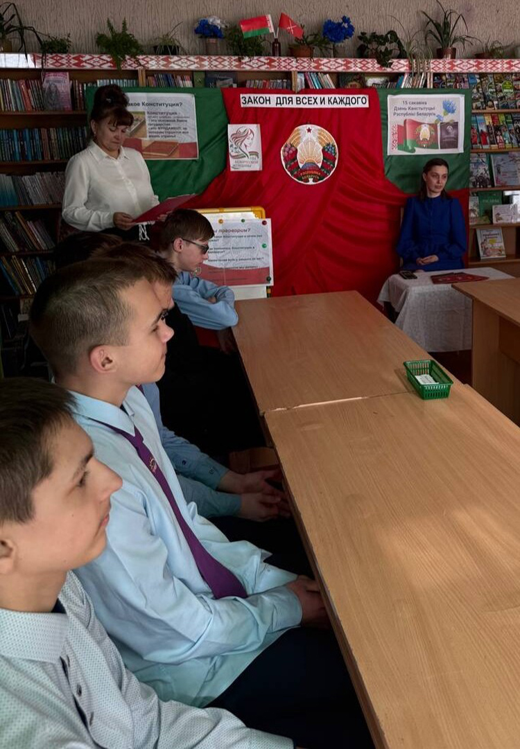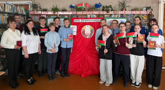 Для ознакомления ребятам была представлена выставка "Главный закон страны - Конституция Республики Беларусь".
